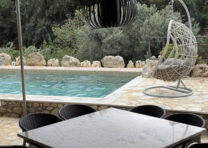 Die 0-Zimmer- Spiti-Manolis liegt circa 1 km vom Strand Stoupa Beach entfernt und verfügt über einen Außenpool zur Entspannung der Gäste. Die Villa in Lévktron verfügt über Parkplätze und eine Terrasse mit Aussicht auf die Berge.